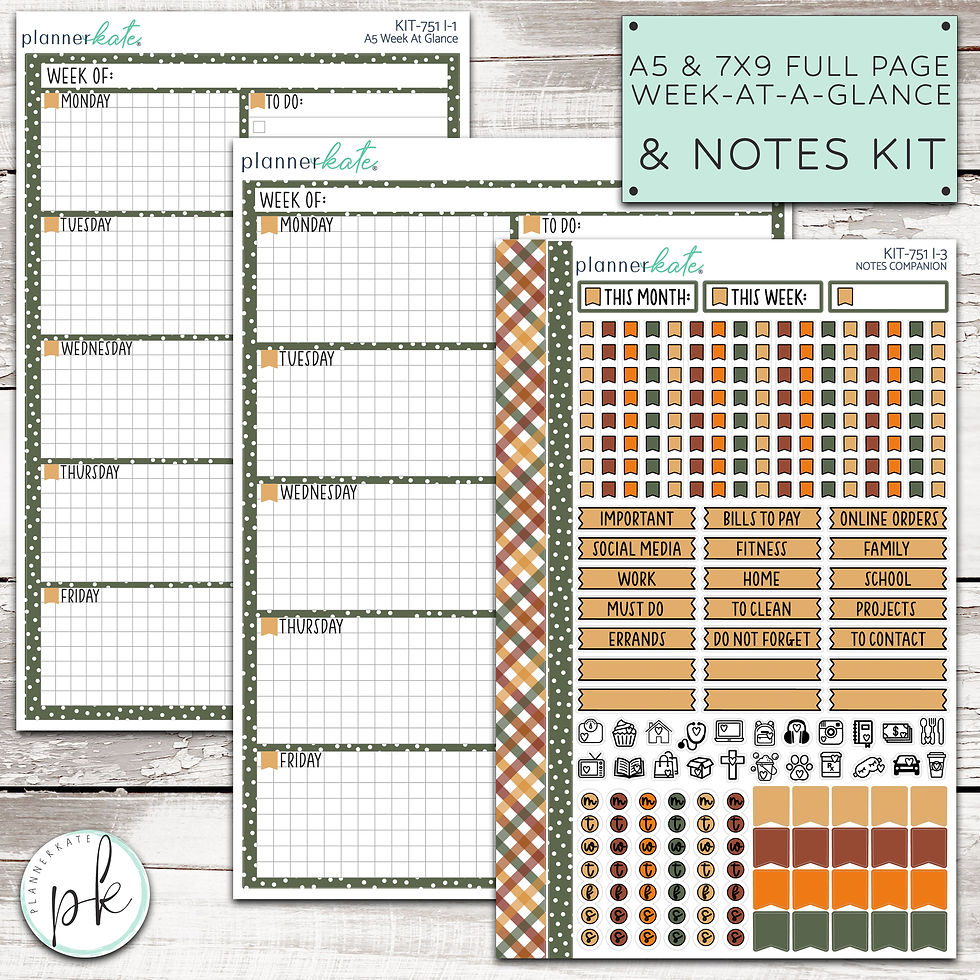 KIT-750 I || "Crisp & Cozy" Week-at-a-Glance / Notes Companion
