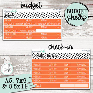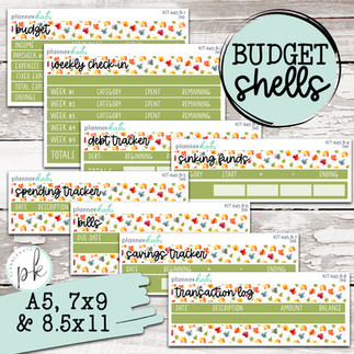 Budget Shell, Weekly Check-In, Debt Tracker, Sinking Funds, Spending Tracker, Bills Tracker, Savings Tracker & Transaction Log
