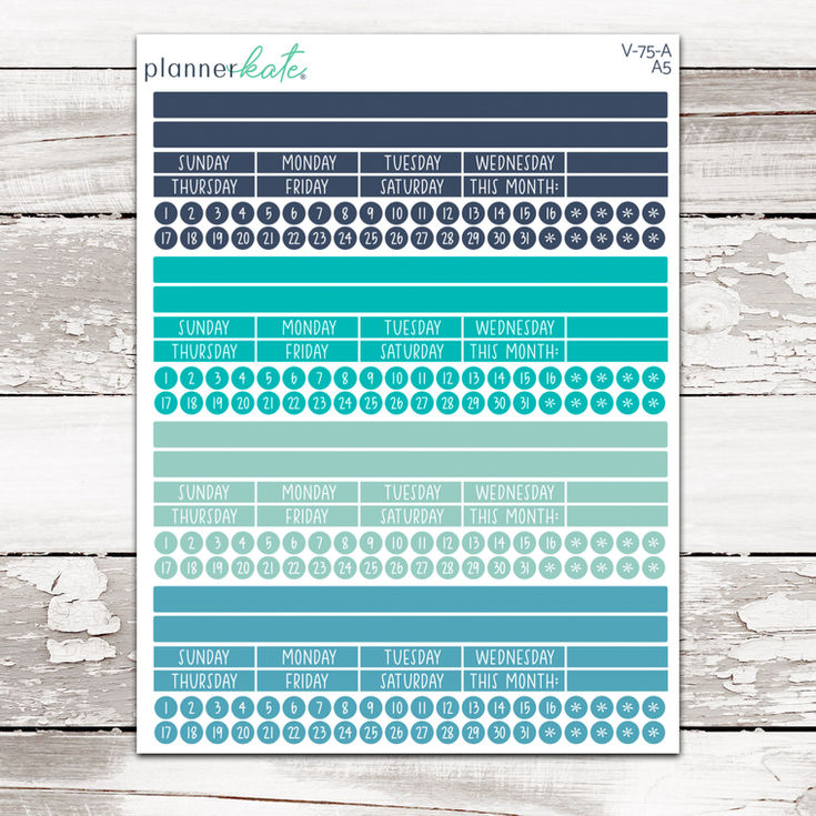 Listing is for one 7.2x5.5 sheet which includes 4 set of removable matte stickers. Strips can be used in A5 monthly layout to redate, change from a Sunday to Monday start, etc.