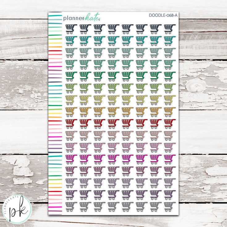 DOODLE-068 || GROCERY / SHOPPING CART Doodle Planner Stickers