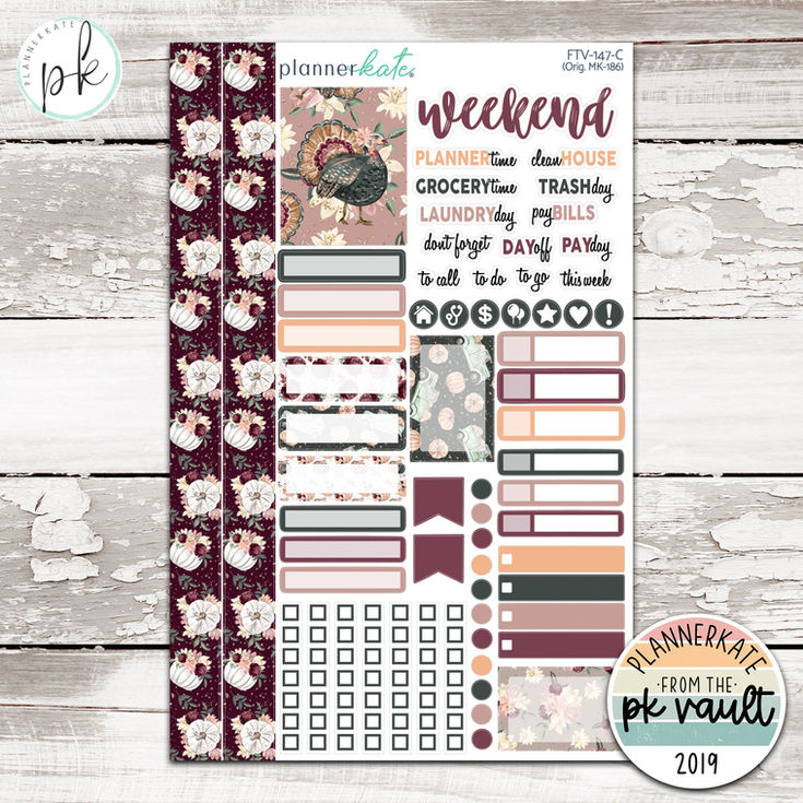 FTV-147 || THANKSGIVING FLORAL - Weekly Kit Planner Stickers - Vault MK-186