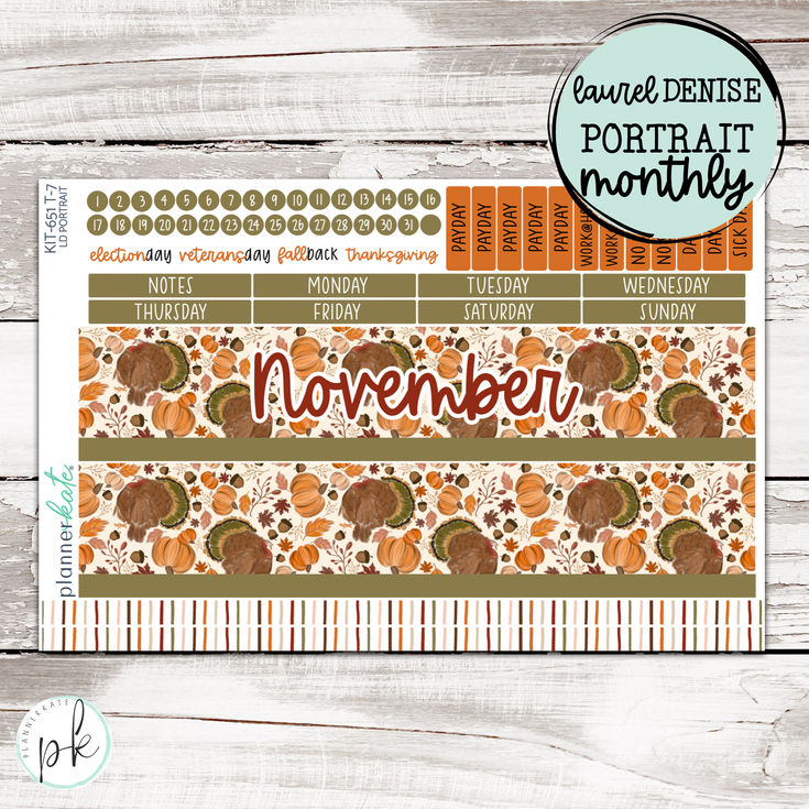 KIT-651 T - Laurel Denise Monthly - Portrait Size || "FAMILY. TURKEY. FOOTBALL."