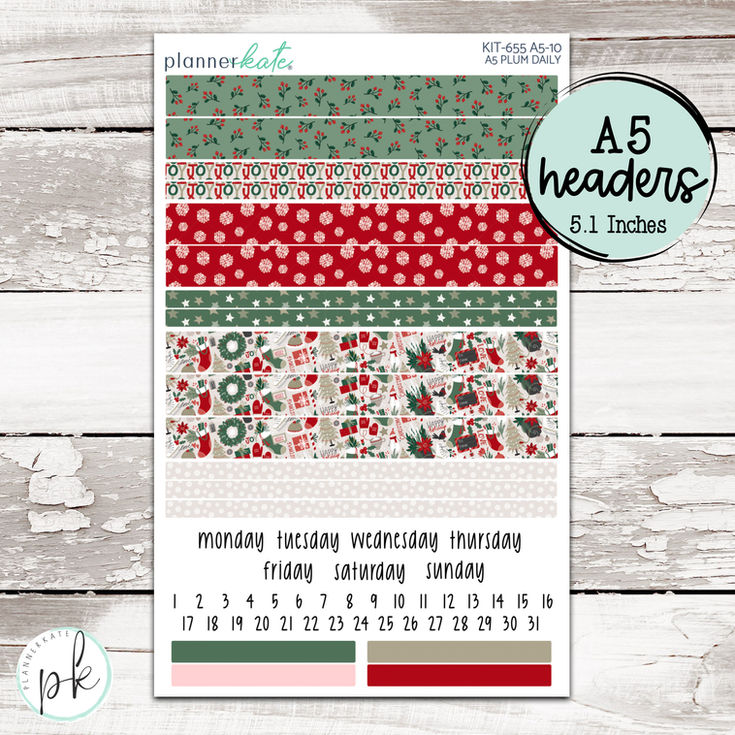 A5-10) Daily Headers & Thin Washi (.5in tall x 5.1in wide / .19in tall x 5.1in wide)