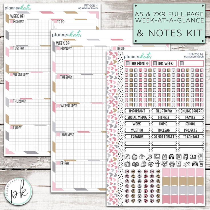 This listing is for the Full Page Week-At-A-Glance shells that were previously part of the daily duo listings as well as as our popular Notes Companion Sampler. Perfect for you Monthly or Weekly Notes pages.