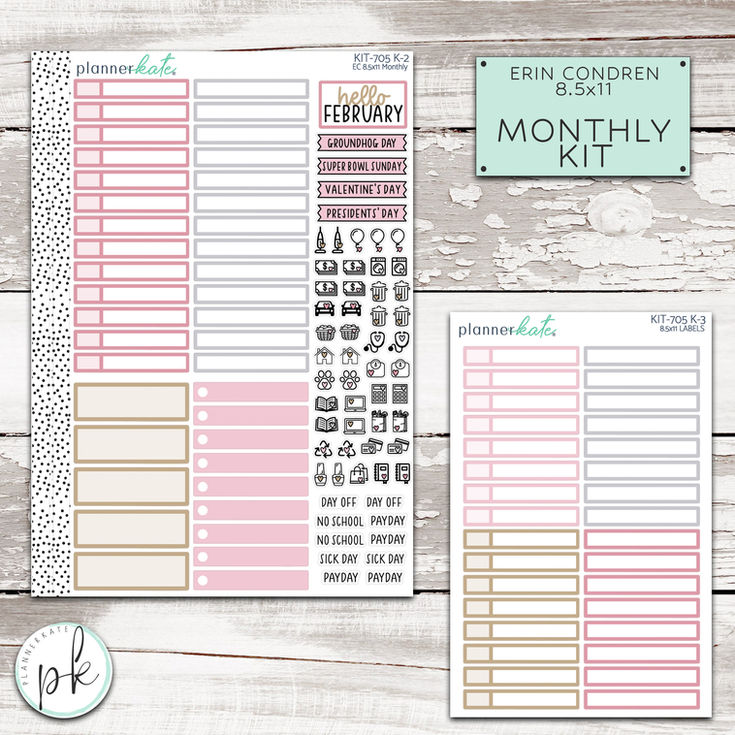 This listing is for the monthly 8.5x11 kits designed for Erin Condren Planners.
