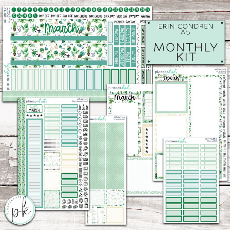 This listing is for the monthly A5 kits designed for Erin Condren Planners. All sheets are sold individually, selection made in drop down when adding to cart.