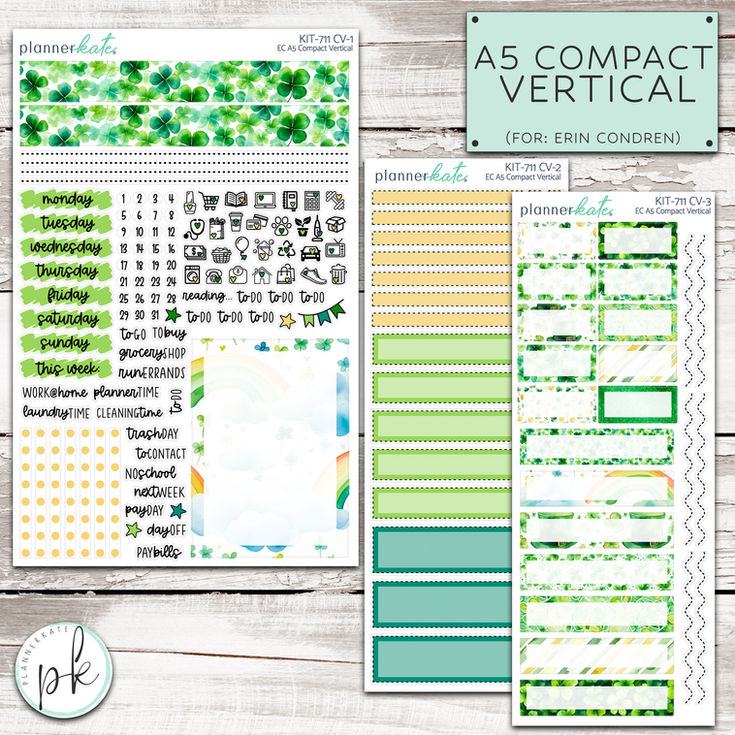 KIT-711 A5 CV || "Shamrock" Weekly - Erin Condren A5 Compact Vertica