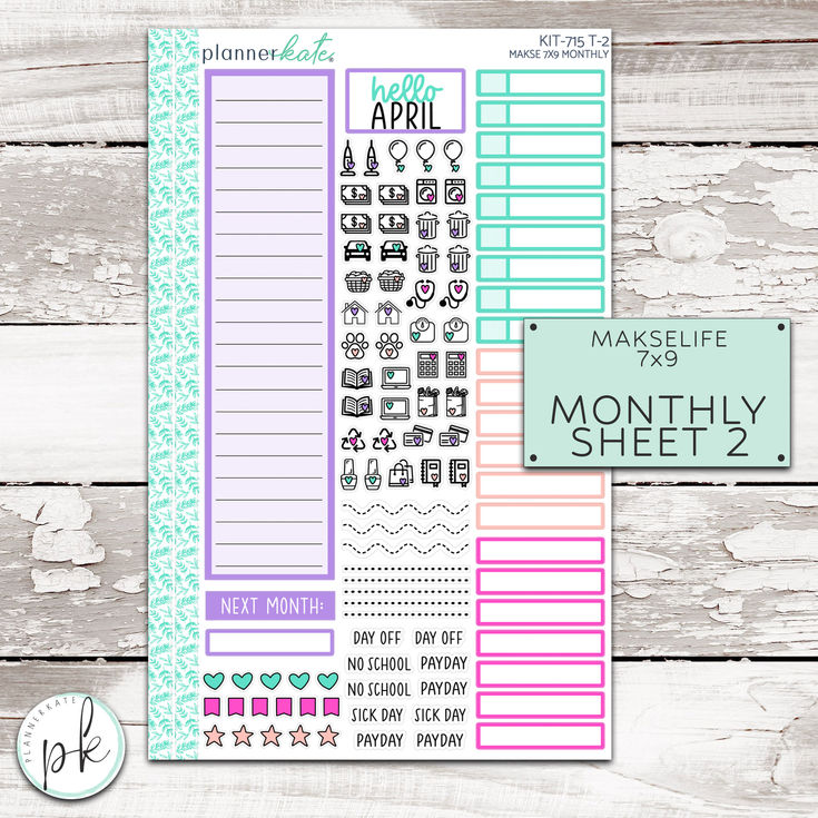 This listing is for the MakseLife 7x9 Monthly Sheets: