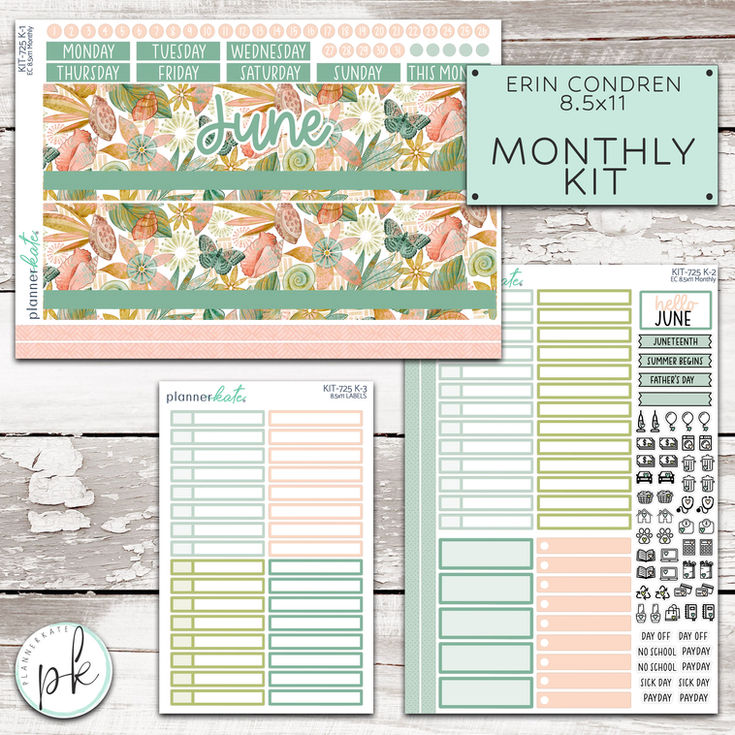This listing is for the monthly 8.5x11 kits designed for Erin Condren Planners.