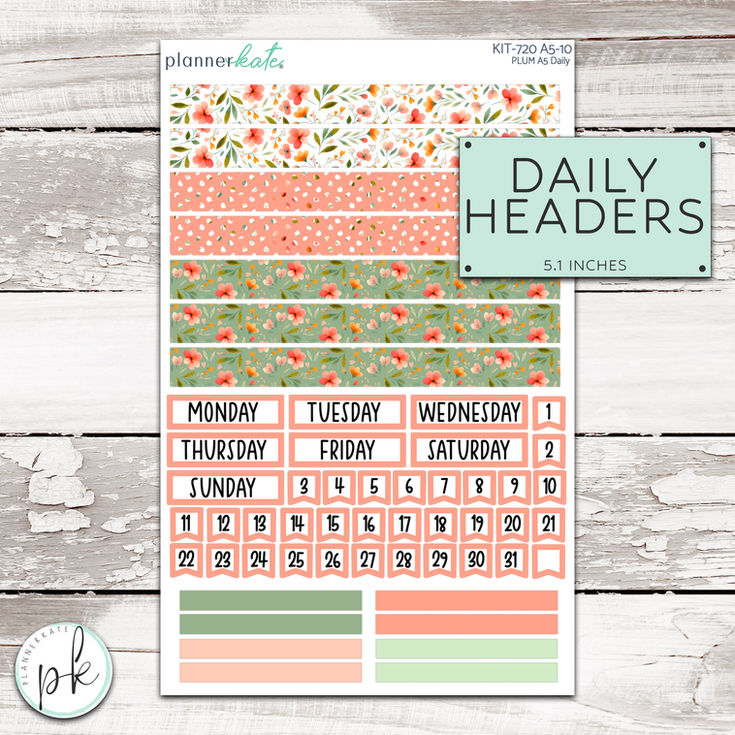 A5-10) Daily Headers (.5T x 5.1W / Days .4T x 1.5W / Flags .4)