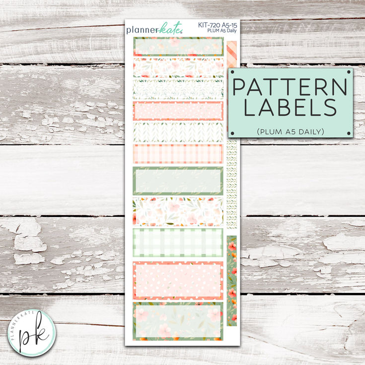 A5-15) Pattern Labels - Covers time in planner (2.4 inches wide)