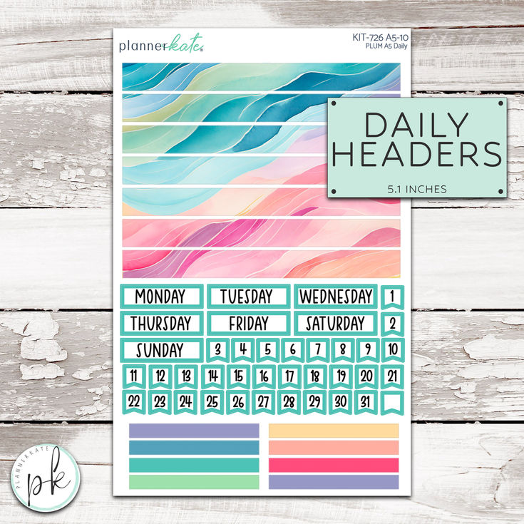 A5-10) Daily Headers (.5T x 5.1W / Days .4T x 1.5W / Flags .4)