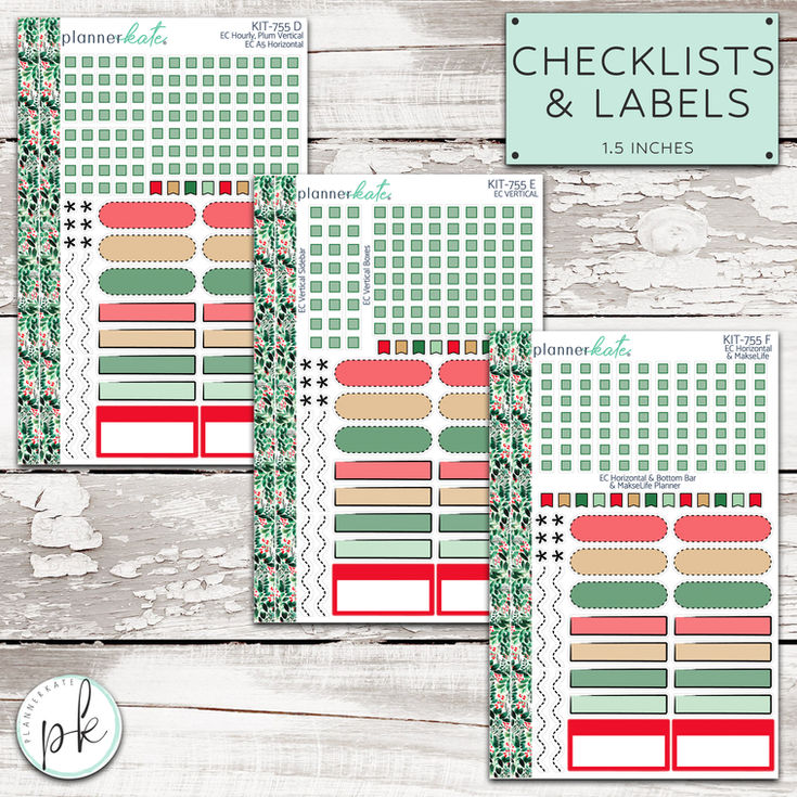 F) Horizontal Checklists & Labels (.24 spacing of checklists) - Works in EC 7x9 Horizontal & MakseLife 7x9 Vertical