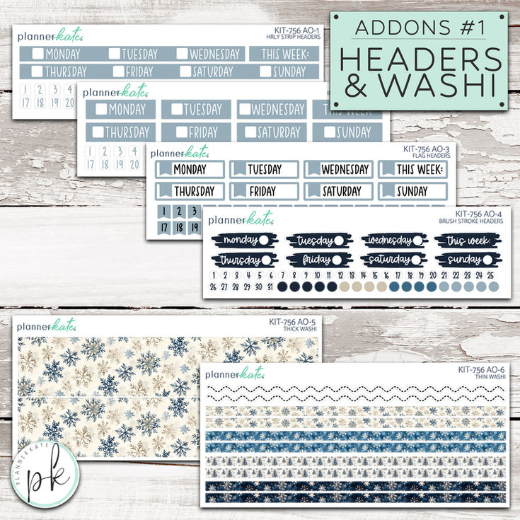 KIT-756 ADD ONS #1 || "Frosted Pines" Kit Add Ons - Headers / Washi