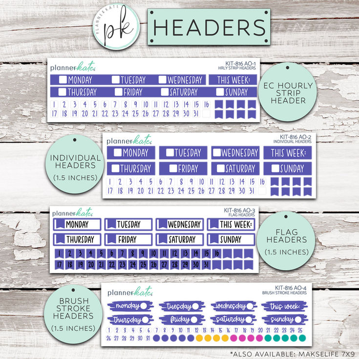 AO-2) Individual Day Headers (1.5W x.4T inches / .25 date square)
