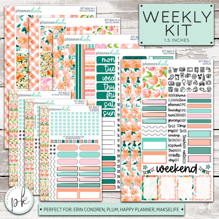 This listing is for the weekly kit sheets designed for Erin Condren Planners. These kits also work great a many other planners include Plum, MakseLife, Happy Planner and various inserts. The weekly kits are based on a 1.5 inch column width.