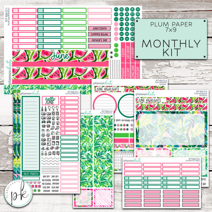 This listing is for the monthly kits designed for the 7x9 Plum Paper Planners