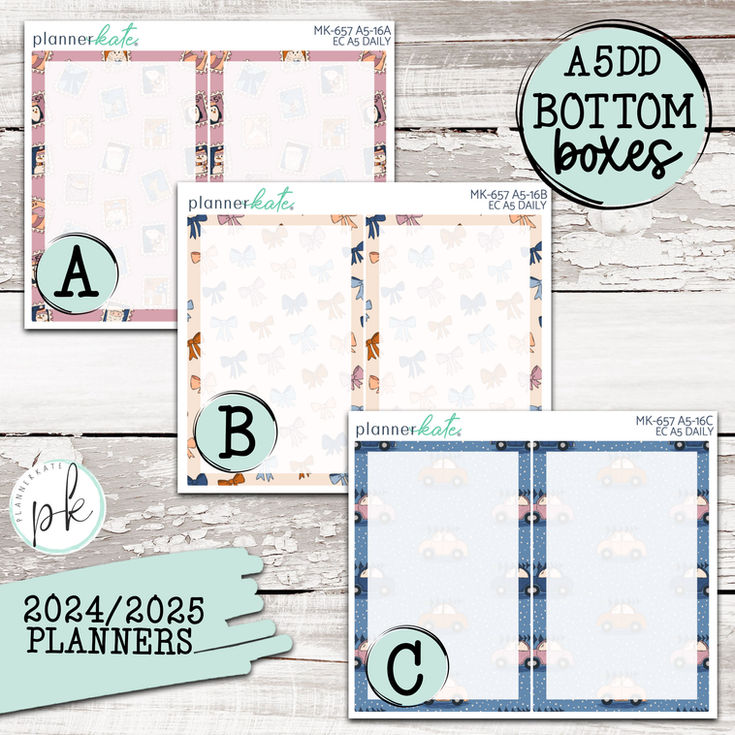 A5-16A-C) Decorative Bottom Box Covers (3.88in tall x 2.5in wide) - 2024/2025 Planners
