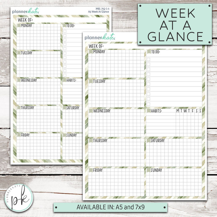 This listing is for the Full Page Week-At-A-Glance shells that were previously part of the daily duo listings as well as as our popular Notes Companion Sampler. Perfect for you Monthly or Weekly Notes pages.