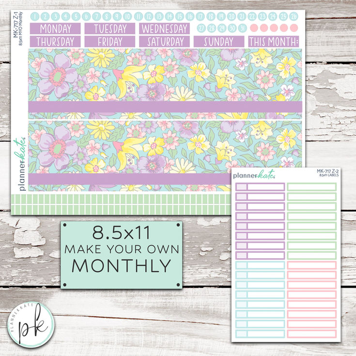 Our MYO Monthly kits were designed for those wanting a monthly layout when we don't have one specfically designed for YOUR planner. The sheet comes with thick washi (8.125 inches wide x 2.1 inches tall) that can be trimmed down to fit your monthly header as needed. The days of the week are individual so you can pick a Sunday or Monday start to your monthly!
