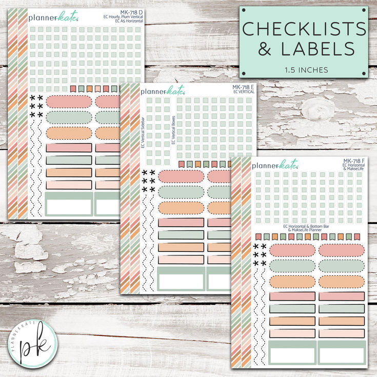 F) Horizontal Checklists & Labels (.24 spacing of checklists) - Works in EC 7x9 Horizontal & MakseLife 7x9 Vertical