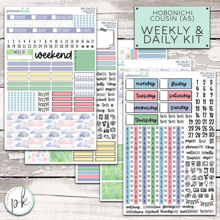 This kit is designed to fit the Hobonichi Cousin Weekly & Daily Layouts.