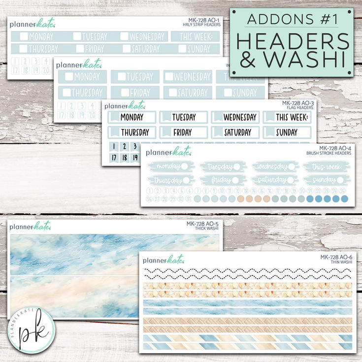 MK-728 ADD ONS #1 || "Ocean Lover" Kit Add Ons - Headers / Washi