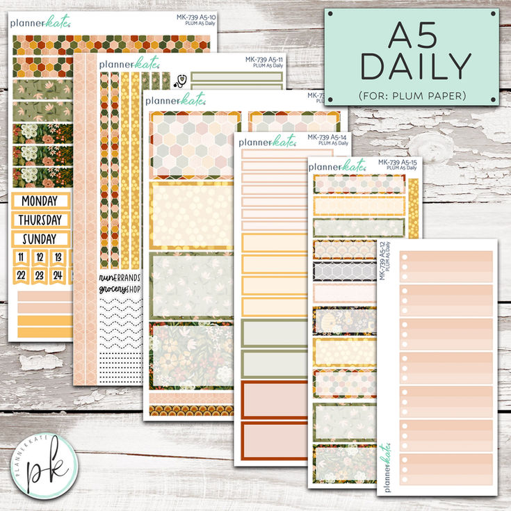 This listing is for the PLUM A5 daily kit sheets: