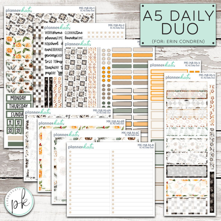 Coordinates with weekly & monthly kits!