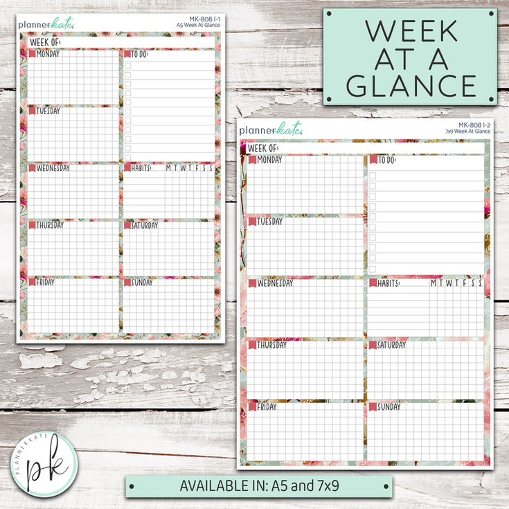 MK-808 I || "Linen Bloom" Week-at-a-Glance