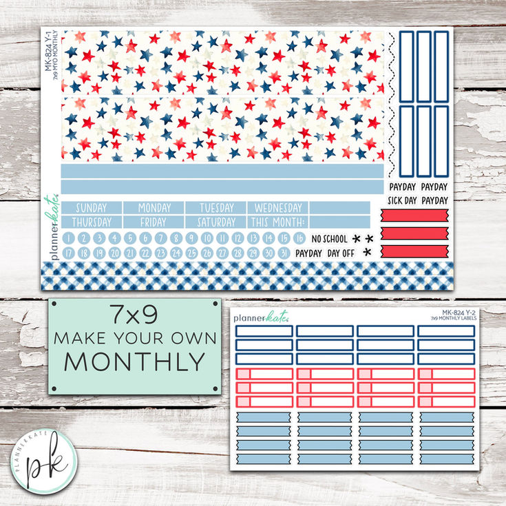 Our MYO Monthly kits were designed for those wanting a monthly layout when we don't have one specfically designed for YOUR planner. The sheet comes with thick washi (6.75 inches wide x 1.6 inches tall) that can be trimmed down to fit your monthly header as needed. The days of the week are individual so you can pick a Sunday or Monday start to your monthly!