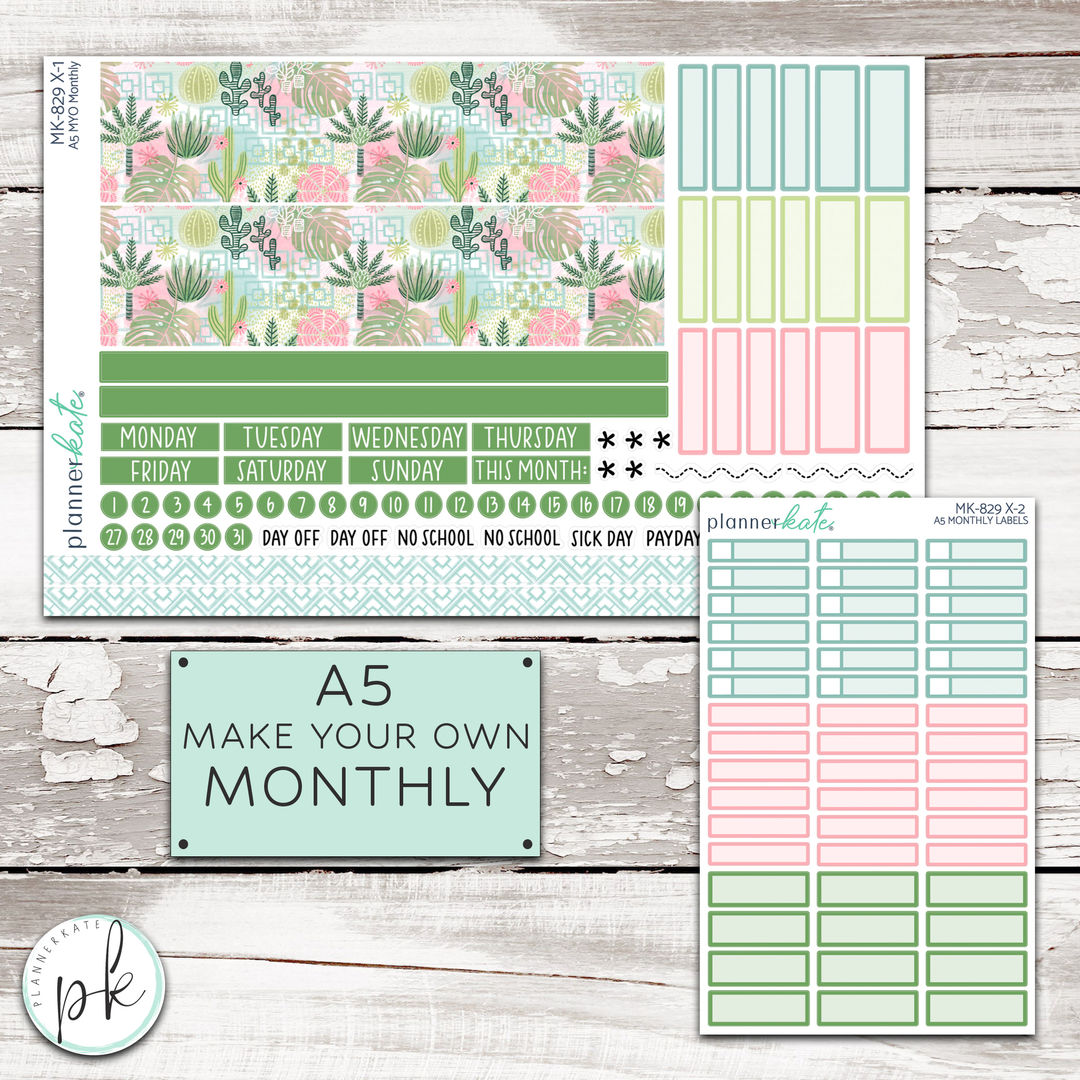 Our MYO Monthly kits were designed for those wanting a monthly layout when we don't have one specfically designed for YOUR planner. The sheet comes with thick washi (5.8 inches wide x 1.3 inches tall) that can be trimmed down to fit your monthly header as needed. The days of the week are individual so you can pick a Sunday or Monday start to your monthly!