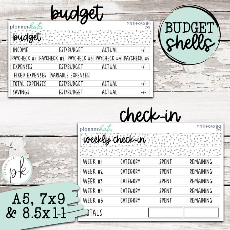 Neutral Budget Shells - 7x9, A5 and 8.5x11 Planners || MNTH-050