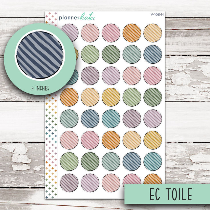 V-108-H || Striped Journal Circles (.9 inches) - EC Toile