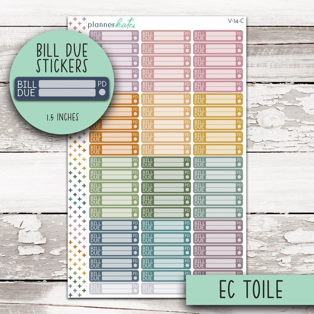 V-14-C || Bill Due Stickers for 7x9 Planner - EC Toile