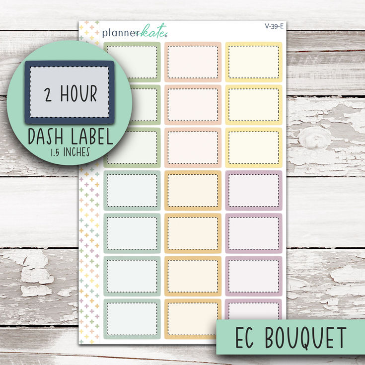 V-39-E || 2 Hour Color Dash Label for 7x9 Planner - EC Bouquet
