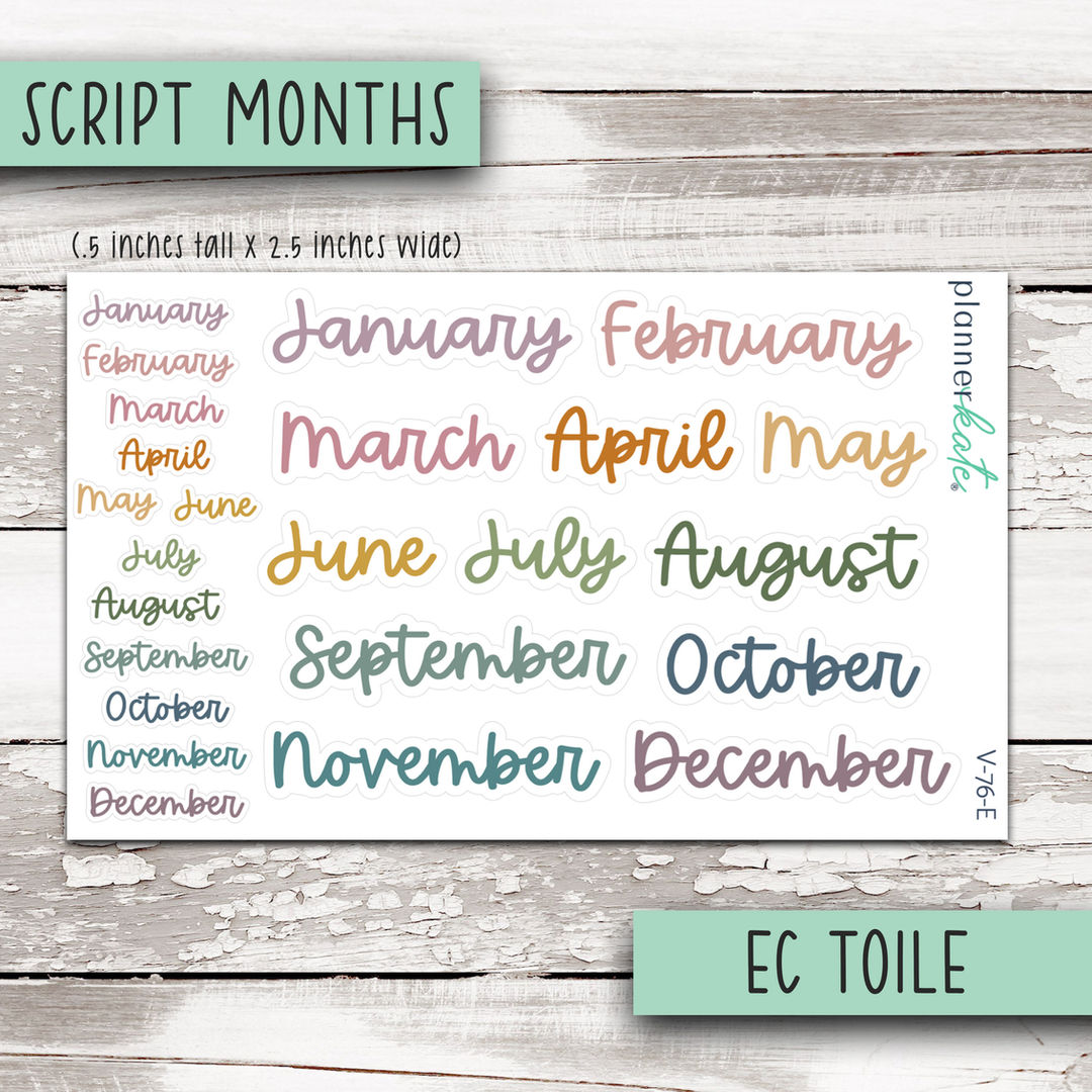 Larger Month Stickers measure .5 Inches Tall with a max width of 2.5 inches depending on the month. Smaller months are less than 1.5 inches in width.