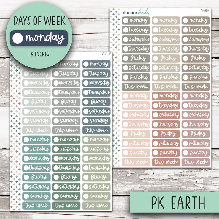V-95 E-F || Days of Week Labels (2024 Sheet G) - PK Earth